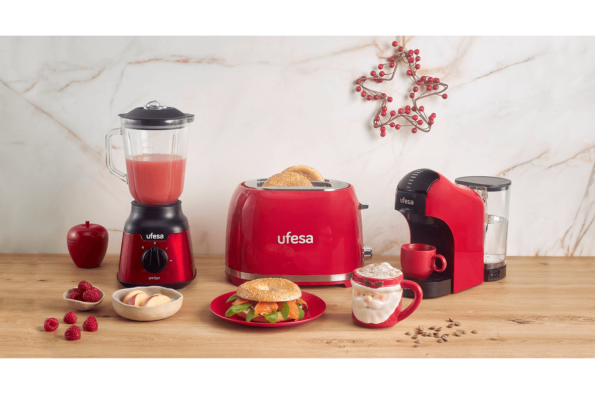En la temporada más festiva del año, Ufesa, marca española de referencia en pequeño electrodoméstico, presenta la colección Red Christmas, compuesta por la tostadora Classic PinUp, la batidora Amber y la cafetera multicápsula Bellagio. Esta selección de electrodomésticos aporta un toque navideño a tus desayunos.