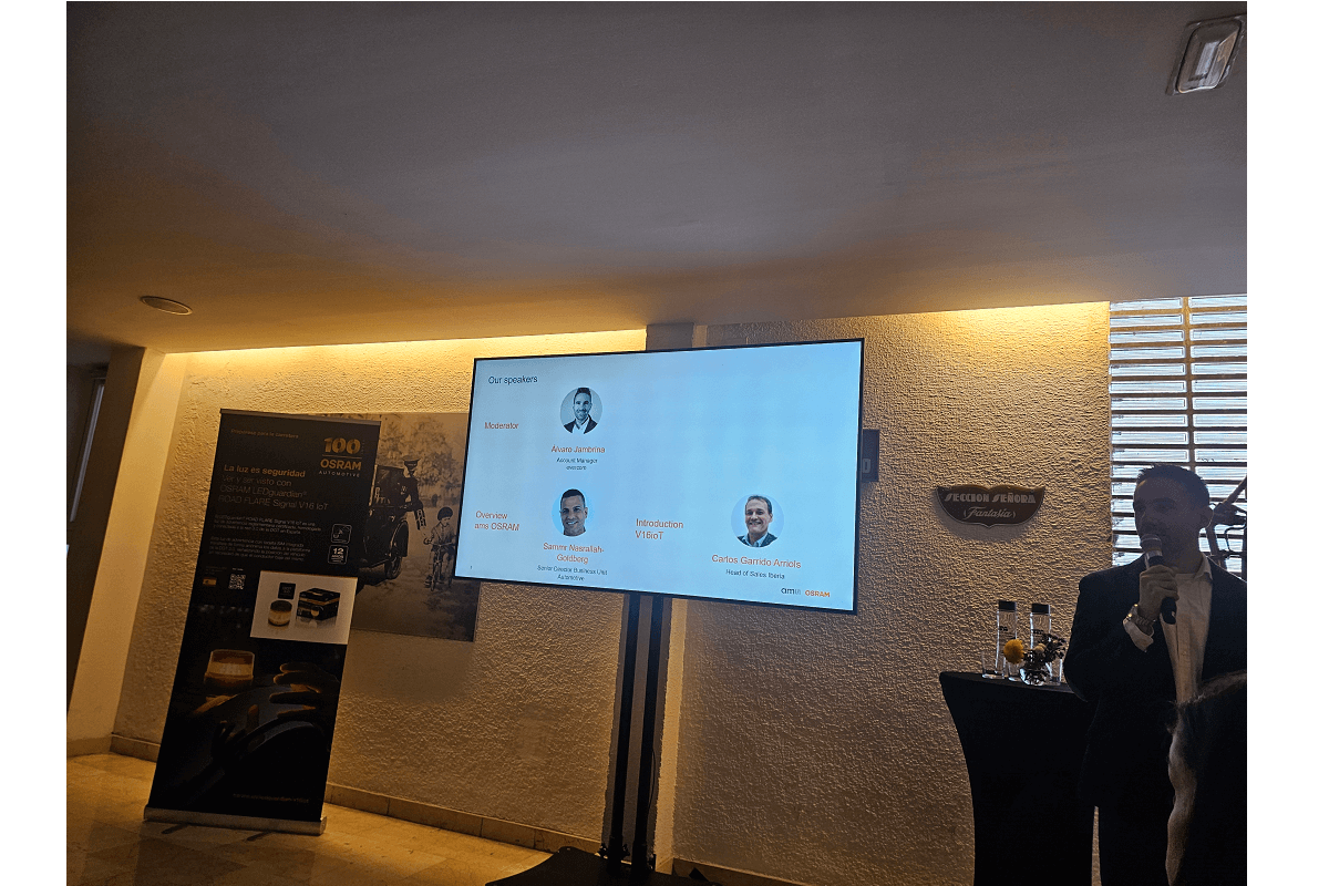 Además de haber presentado el informe, OSRAM ha mostrado al público asistente su nuevo dispositivo LEDguardian ROAD FLARE Signal V16 IoT, que se caracteriza por estar "certificado y conectado" y servirá para "sustituir a los triángulos de emergencia a partir de 2026". Entre sus principales ventajas han destacado su "potencia de visibilidad", siendo capaz de "emitir luz visible a 360º durante al menos media hora y con un alcance lumínico de hasta 1.000 metros", su "conectividad, ya que al encenderse emite una señal de geolocalización exacta del vehículo, siempre de manera anónima", han detallado los participantes en el evento. A su vez, otra de las peculiaridades de este producto es que "la luz de emergencia conectada de OSRAM cuenta con un indicador de batería único, que permite conocer en todo momento el estado de la batería. También cuenta con la certificación DGT 3.0, lo que permite que el dispositivo envíe una señal de emergencia a la plataforma de la DGT, alertando a otros vehículos cercanos sobre un incidente", han explicado.