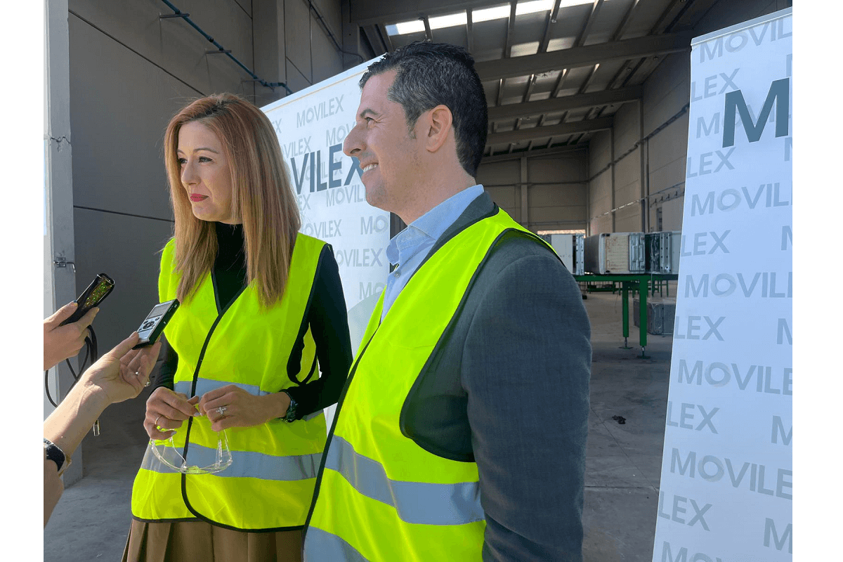 FOTO PRINCIPAL.: Luis García - Torremocha, CEO de Movilex, junto a la alcaldesa de Miranda de Ebro, Aitana Hernando, durante una visita a la planta en abril de 2025.
