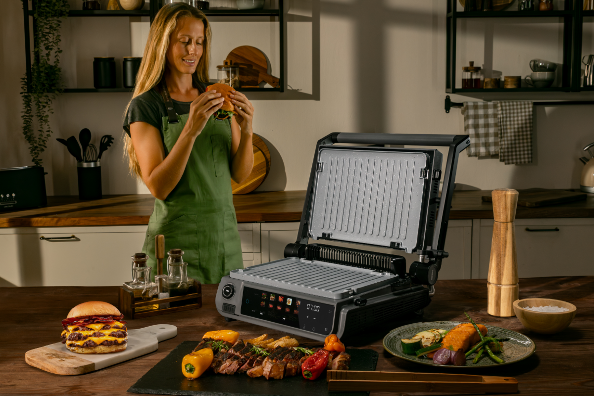 También destaca el diseño de este electrodoméstico por su elegancia y resistencia, con una carcasa de acero inoxidable, un control táctil de vanguardia que asegura un manejo cómodo e intuitivo, y bandejas recoge grasas y placas extraíbles aptas para lavavajillas, lo que facilita su limpieza y lo hace excepcionalmente práctico para el día a día.