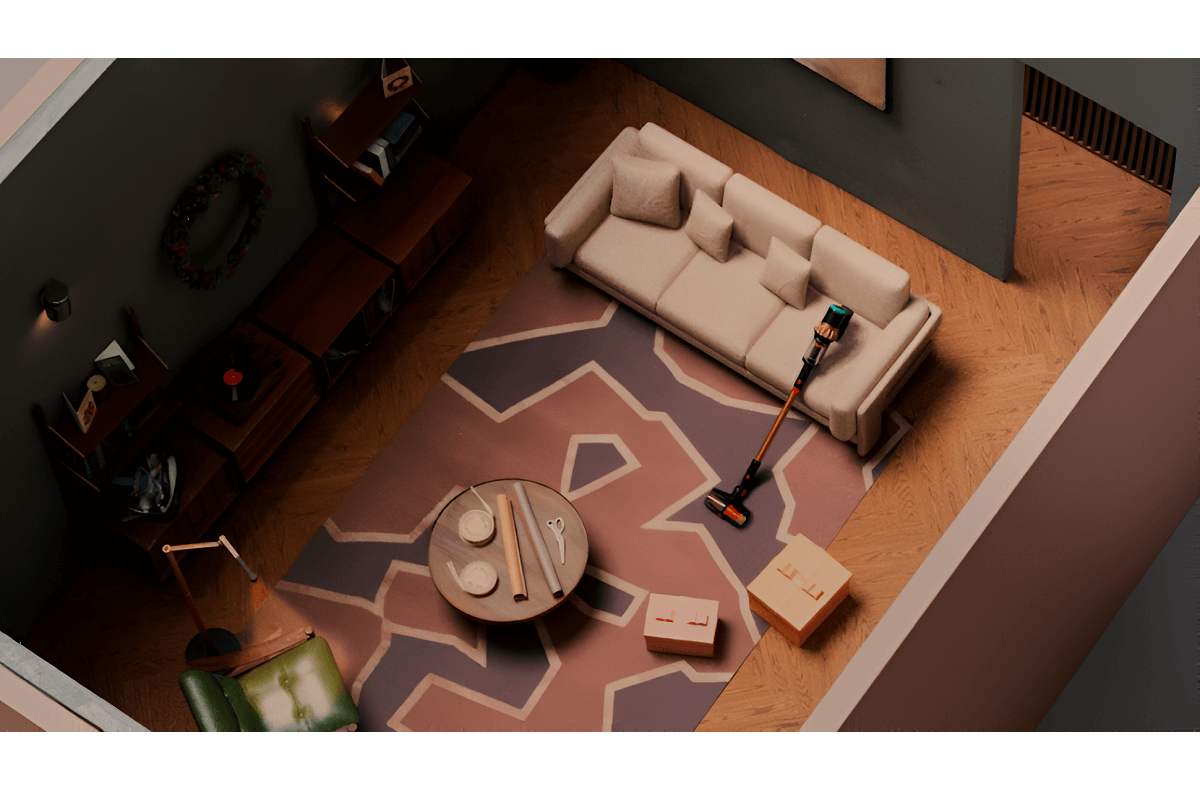 Estas fiestas, Dyson invita a mirar más de cerca. El equipo de creación de modelos y prototipos de Dyson ha construido una casa en miniatura a escala 1:12 que alberga máquinas Dyson impresas en 3D y pintadas a mano escondidas dentro de una caja de regalo.