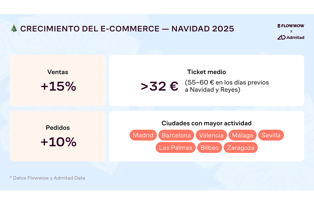 España vivirá este año la Navidad más digital de su historia. Según el último informe realizado por Flowwow, el marketplace global de regalos que conecta a más de 18.000 tiendas locales con nuevos clientes en más de 40 países, y Admitad Data, compañía internacional de perfomance marketing, el comercio electrónico crecerá un 15% en gasto y, al menos, un 10% en número de pedidos durante esta campaña.