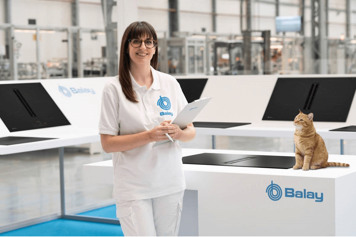 Y, para comunicar esta novedad, se ha decidido contar, en un spot de 20" de duración, con un montón de amigos… Concretamente, con un montón de amigos de cuatro patas. Para ello, se ha recreado una "zona de pruebas" en la fábrica de Balay de Montañana, en Zaragoza. Ahí, una empleada, Alba, se encarga de supervisar que las placas de inducción en negro mate estén perfectas, sin rayas y sin huellas, a pesar de someterlas al duro examen de estos afilados felinos.