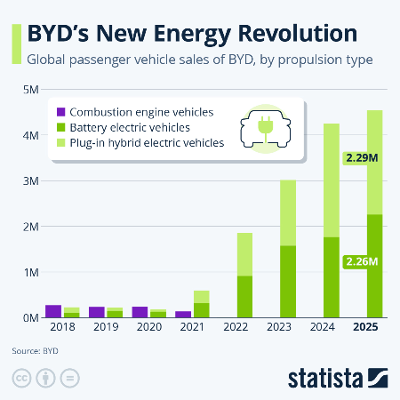 En 2025 la empresa China superó los 4,5 millones de vehículos sostenibles vendidos.