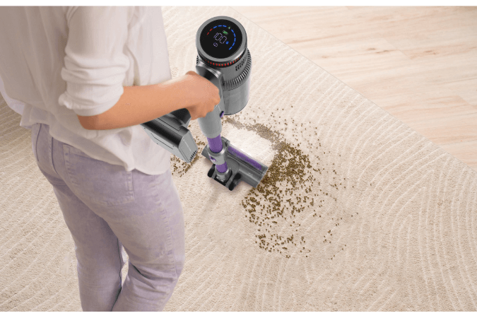 Equipado con motor digital brushless y tecnología multiciclónica, que mantiene una succión potente y constante. Su sistema AutoClean ajusta automáticamente la potencia según el nivel de suciedad, mientras que sus cuatro modos de aspiración se adaptan a todo tipo de superficie. La pantalla digital muestra autonomía restante, nivel de potencia y alertas de mantenimiento, completando la experiencia con accesorios específicos que facilitan la limpieza diaria con comodidad.