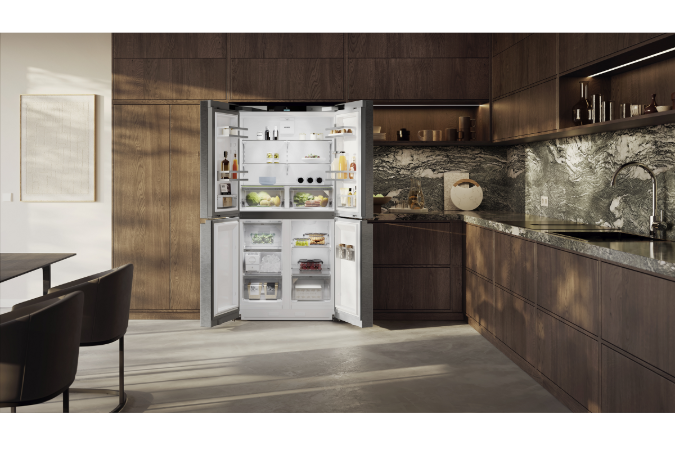 Estos frigoríficos cuentan también con el sistema patentado FlexDoorSystem, que permite que las puertas se abran y cierren de forma individual y segura. Cuando están cerradas, crean un sellado hermético que optimiza el consumo energético. Otra de sus características es el uso de materiales de alta calidad con puertas de acero inoxidable SmartSteel, TerraSteel y BlackSteel, según el color y textura que se busque en cada cocina.