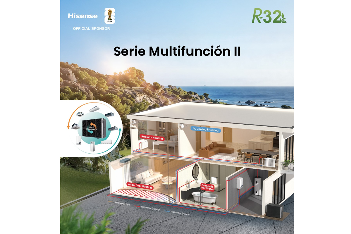 La firma Hisense lanza Multifunción II, su innovadora solución completa de climatización sostenible y eficaz creada con el objetivo de brindar la máxima eficiencia energética y confort en aplicaciones residenciales, fortaleciendo así su compromiso con la innovación en el sector HVAC.