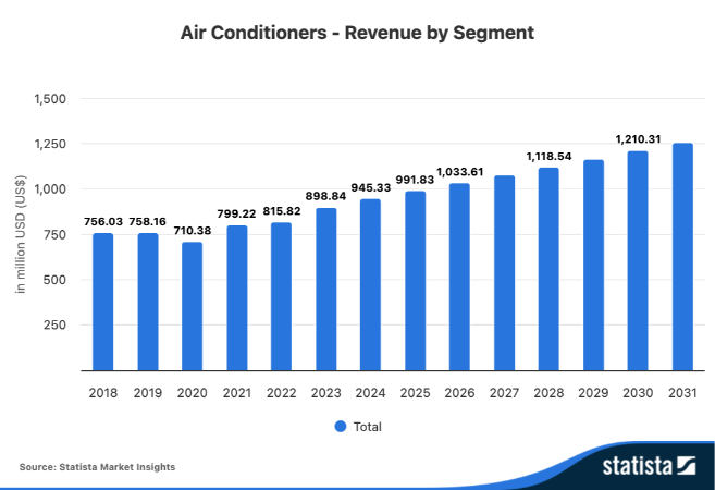 En 2031 se calcula que los ingresos alcancen los 1.256 millones por la venta de aires acondicionados.