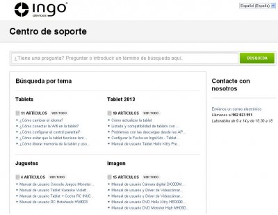 Ingo Devices lanza su Centro de Soporte online (http://support.ingodevices.com/) con el objetivo de centralizar las dudas habituales de los usuarios de los productos tecnológicos Ingo: tablets, cámaras digitales, reproductores de DVD o MP3/4/5, entre otros.